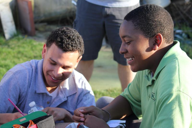 Mentor and mentee engaged in a living skills activity before they hit the golf course.